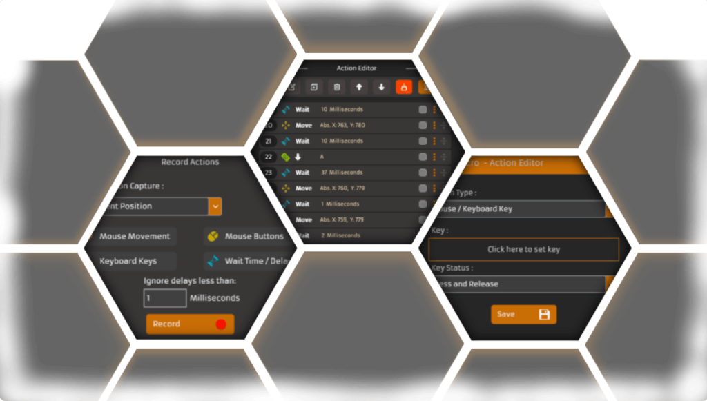 Record keyboard keys, mouse actions, movements, and timing delays effortlessly with just one click, making automation simple and precise!